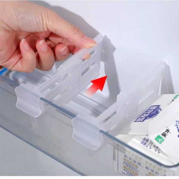 Product Specifications Material: Durable, food-grade plastic (safe for fridge use) Design: Adjustable and expandable for different shelf sizes Function: Helps