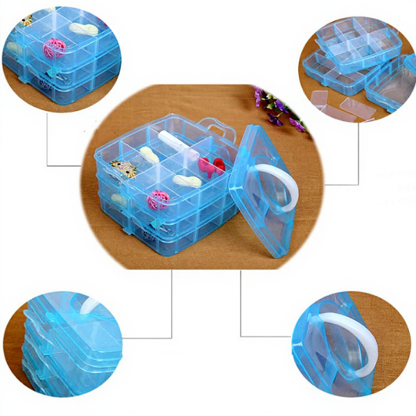 Design: 3 detachable layers with 18 adjustable grids for organized storage