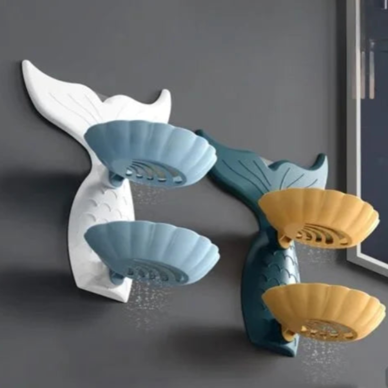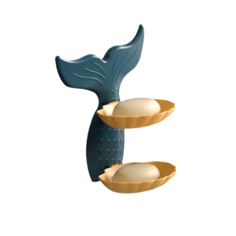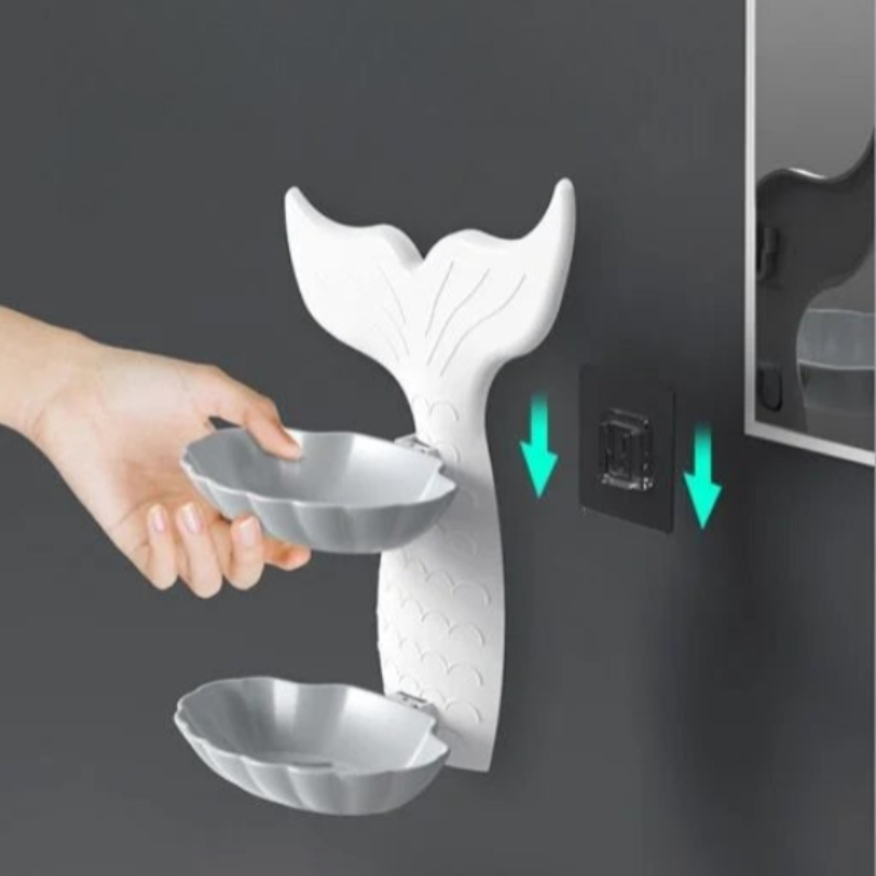 Mermaid Double Layer Soap Tray – Self-Adhesive Bathroom Soap Holder, Mermaid-Shaped Stand (Random color-Pack of 1)