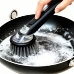 Pan Cleaning: Apply the brush to greasy or stubborn residues on pans. The strong bristles combined with soap help to break down and remove tough grime.