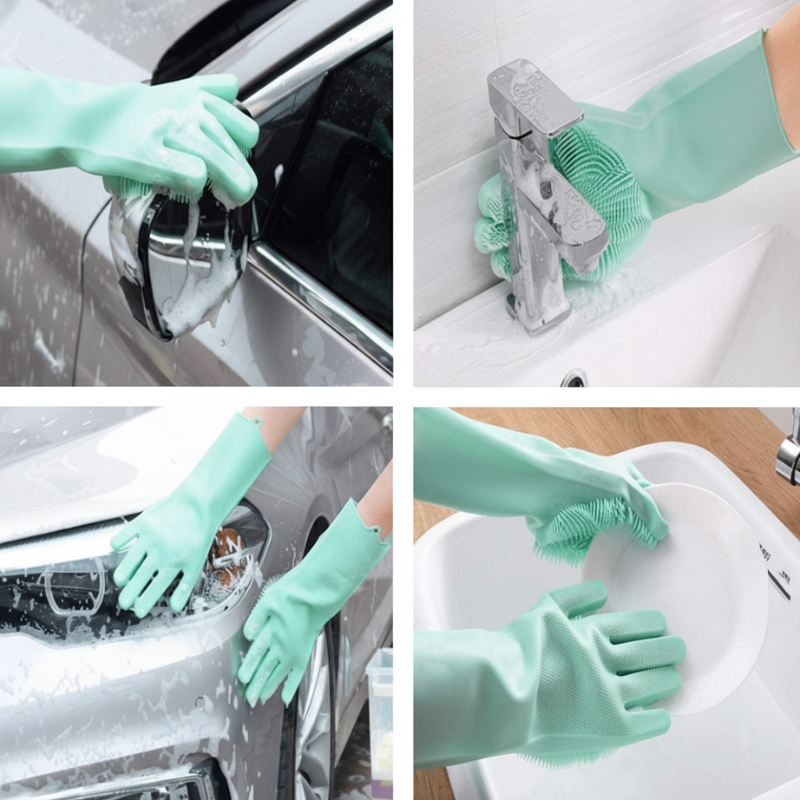 Multipurpose Silicone Scrubbing Hand Gloves for Dishwashing & Cleaning – Heat Resistant, Reusable & Non-Slip (Random Color- Pack of 1 Pair)